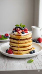 A6: Fresh berries, honey, maple syrup, or a dollop of fruit compote provide fresh, natural sweetness that balances the pancakes’ creamy texture and protein content. Nut butters and sliced bananas also add depth and nutrition.