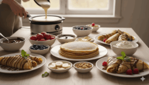 A7: Yes! You can make crepes in advance and stack them between sheets of parchment paper in the fridge or freezer. Gently reheat them on a warm pan or in the oven just before serving. This frees you up to focus on fresh fillings and interactive fun at the party.