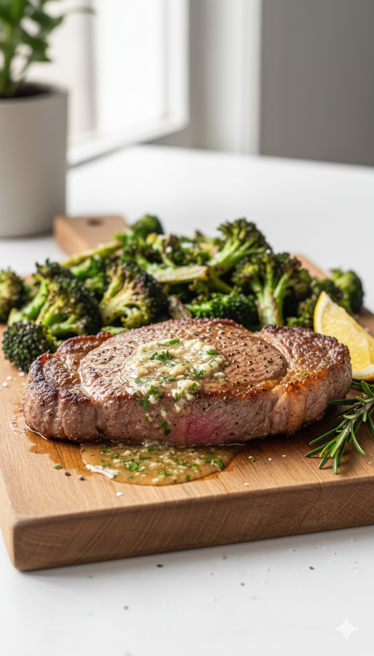 dazymeal > Healthy Cooking > Keto & Low-Carb Recipes > Savor Garlic Butter Steak Paired with Crispy Roasted Broccoli