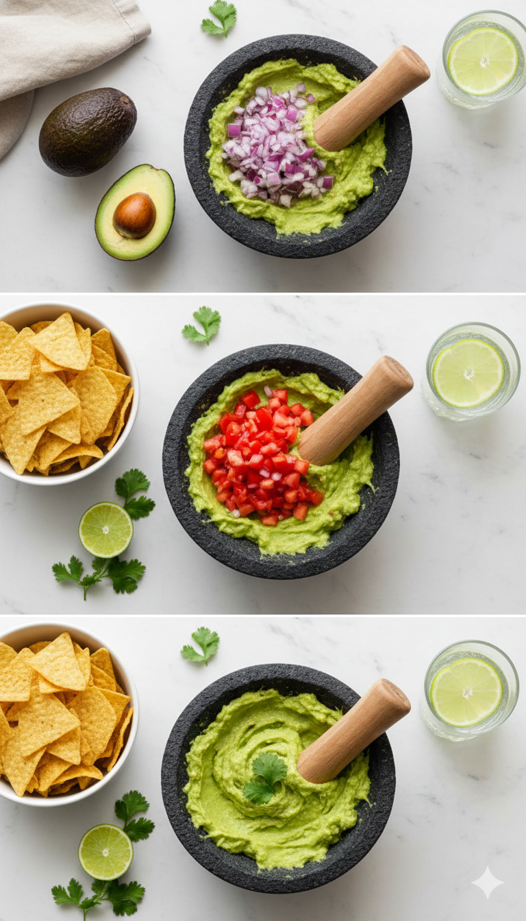 A6: For a chunky guacamole, use a fork to gently mash the avocado, leaving some small pieces intact for texture. If you prefer it smoother, a potato masher or even a food processor can be used-but watch out not to overblend and lose that lovely fresh feel.Q7: Can guacamole be prepared in advance?