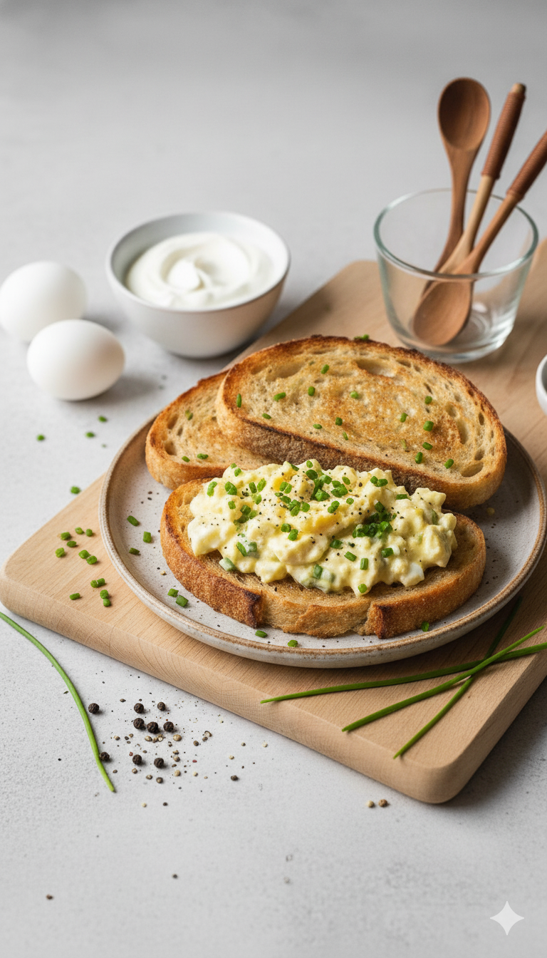 - Chill and serve: Refrigerate for at least 30 minutes to meld flavors. Serve garnished with extra chives or parsley and enjoy your creamy, lightened egg salad.