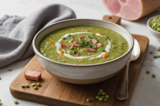 Dive into a bowl of hearty vegetarian split pea soup-where creamy peas,…