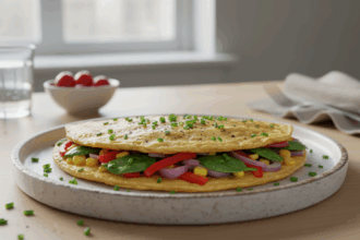 Start your day with a colorful veggie omelette-a vibrant blend of fresh…