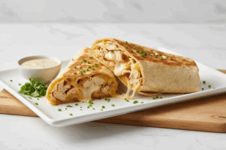 Sink your teeth into deliciously melty cheesy garlic chicken wraps, where tender…