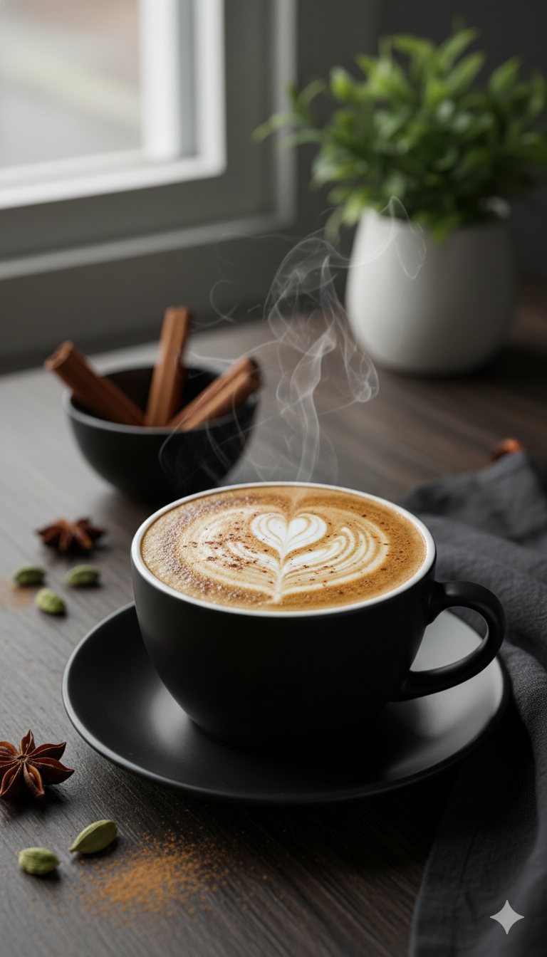 The magic behind every chai latte is its complex spice blend.Each spice brings health benefits – from digestion aiding ginger to metabolism-boosting cinnamon. The warming kick of black peppercorns enhances bioavailability of the other spices, amplifying their goodness and flavor. Crushing whole spices just before brewing preserves essential oils, resulting in an irresistible aroma and a bold, authentic profile that captures chai’s soul.