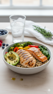 Fueling victory starts in the kitchen, were a thoughtfully crafted balanced meal transforms raw ingredients into athletic powerhouses.This nutrient-dense dish harmonizes macronutrients essential for athletic performance, tailored perfectly to energize your body pre-workout and accelerate recovery post-training. Inspired by global superfoods and smart hydration principles, it’s your new secret weapon for endurance and strength.