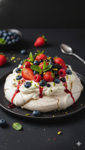A1: Imagine a cloud spun into a dessert-light, crisp on the outside with a marshmallowy center, crowned with whipped cream and fresh fruit. Pavlova is a meringue-based dessert named after the russian ballerina Anna Pavlova,embodying grace and sweetness in every bite.